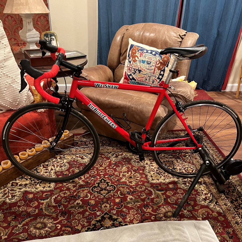I got home and I got the bike going again. The maiden voyage of the LilButtCheeks bike was a failure, but this is not the end. I will accomplish this route without such a massive problem, but until then, it stays on the stationary setup, waiting, planning, readying itself for glory.